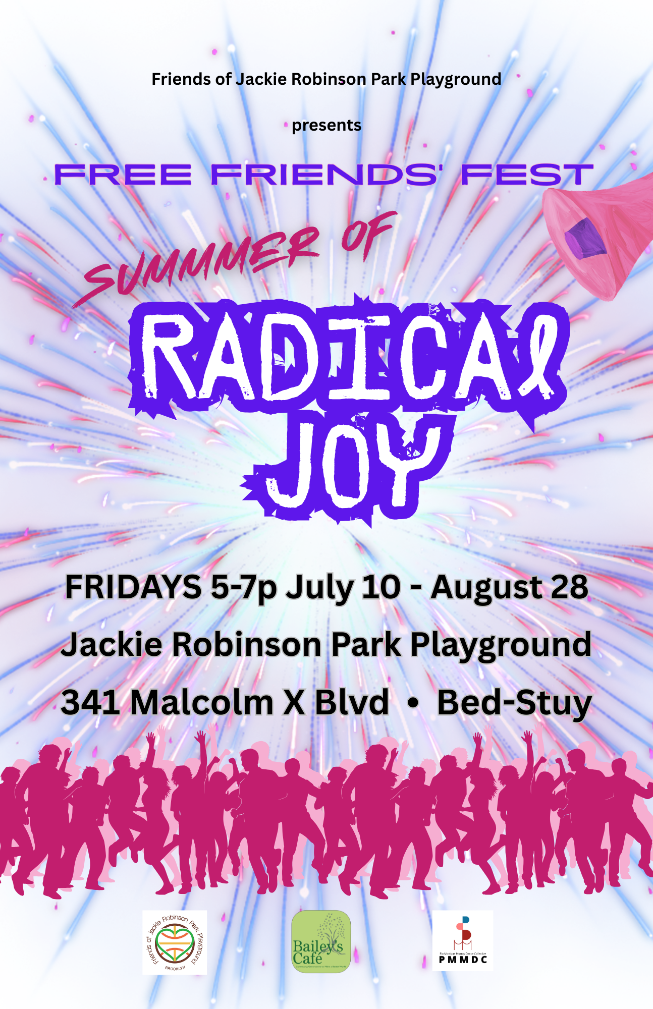 The Friends of Jackie Robinson Park Playground (FOJRPP) @fojrpp presents Free Friends’ Fest, a mini-festival produced by Bailey’s Cafe and PMMDC We bring art activities, performances, and fresh produce to the park, to engage more residents and promote the Park as a hub for community gatherings and creative expression.
